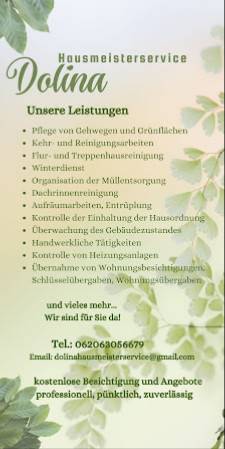 Dolina Dienstleistungen ist ein Unternehmen, das sich auf Hausmeisterservice spezialisiert hat. Sie bieten ihre Dienstleistungen in der Nähe von Bürstadt an.